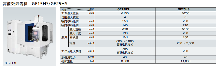- · GE25HS:高速、大功率主軸,為汽車差速器等大直徑齒輪提供高效加工