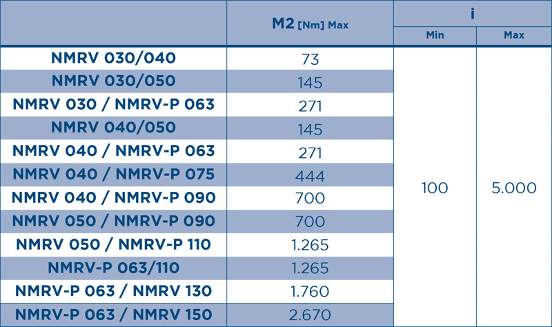 對于 NMRV040/NMRV050 型號來說,采用減速器預緊力矩 HA31,對于 NMRV-P 系列來說,采用 HW 030/040
