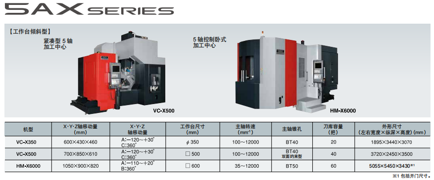 - · HM-X6000,該型號(hào)尤其適合復(fù)雜形狀的汽車和飛機(jī)部件的高效加工,該產(chǎn)品結(jié)合了HM系列高剛性臥式加工中心和立式加工中心生產(chǎn)過(guò)程中積累的五軸控制技術(shù)。