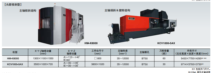 - · KCV1000-5AX,該機型可以高速高效地加工大型飛機零部件,該五軸加工單元采用主軸傾斜回轉結構(適合加工大型工件),用長工作臺加工長工件。